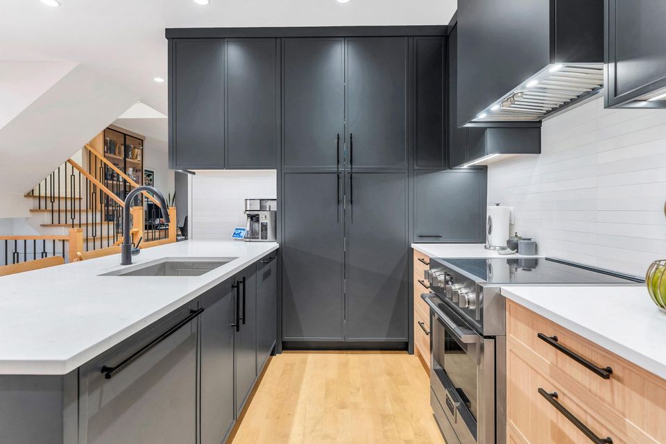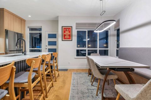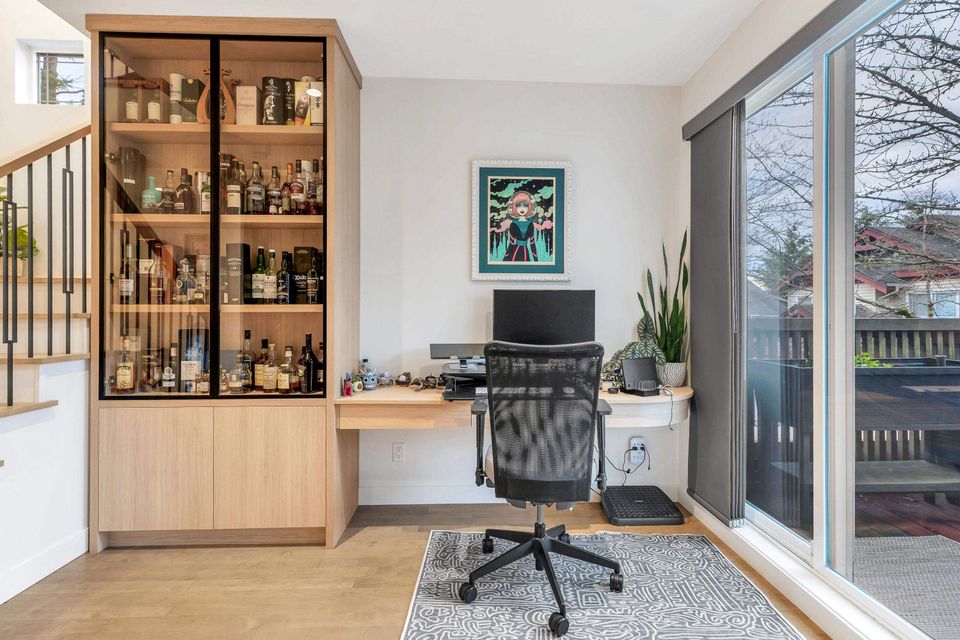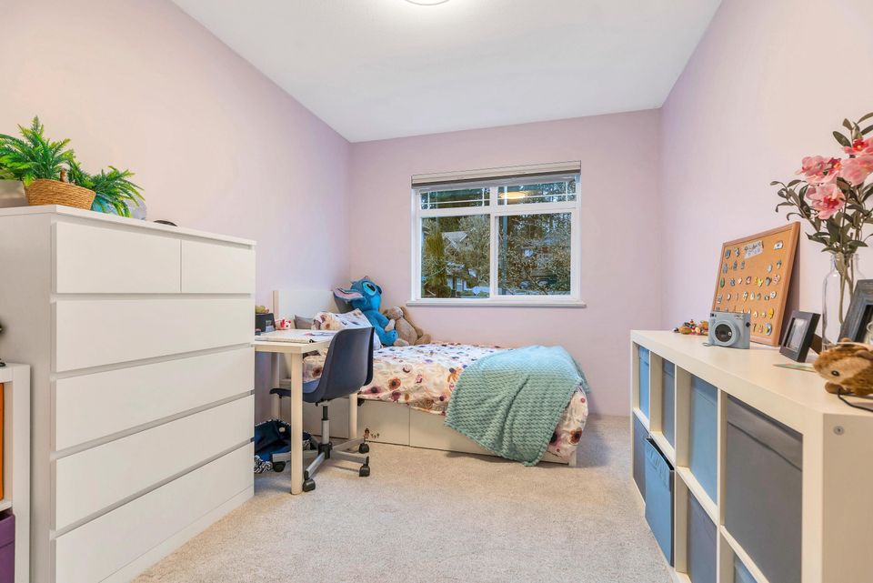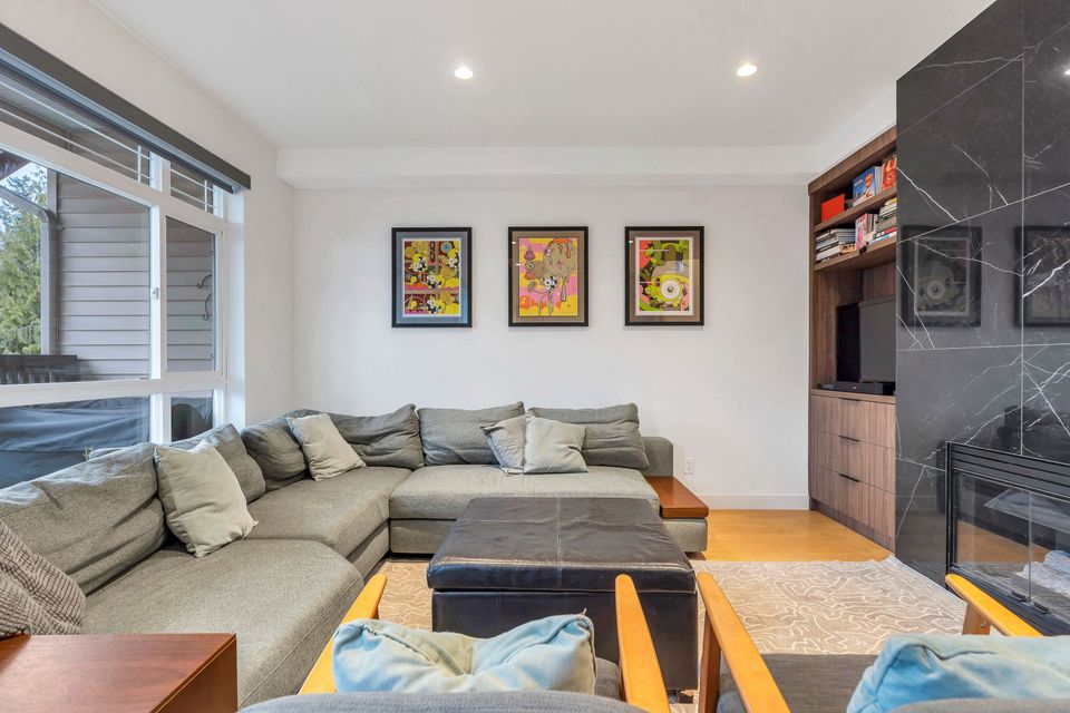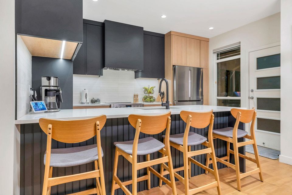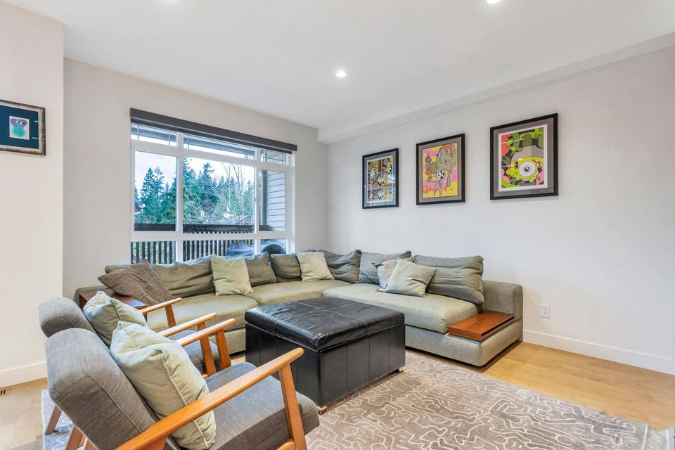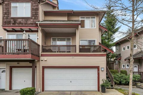 Extensively renovated Heritage Woods townhome with a professionally opened main floor creating a bright, modern layout. The redesigned kitchen offers contemporary finishes and walkout access to a private patio—perfect for indoor/outdoor living. Upstairs features 3 spacious bedrooms including a primary with ensuite. The lower-level flex room is ideal for office, gym, or media space and was roughed-in at construction for a future bathroom. Double parking. Steps to top-rated schools, parks, trails, Newport Village, Suter Brook and SkyTrain.