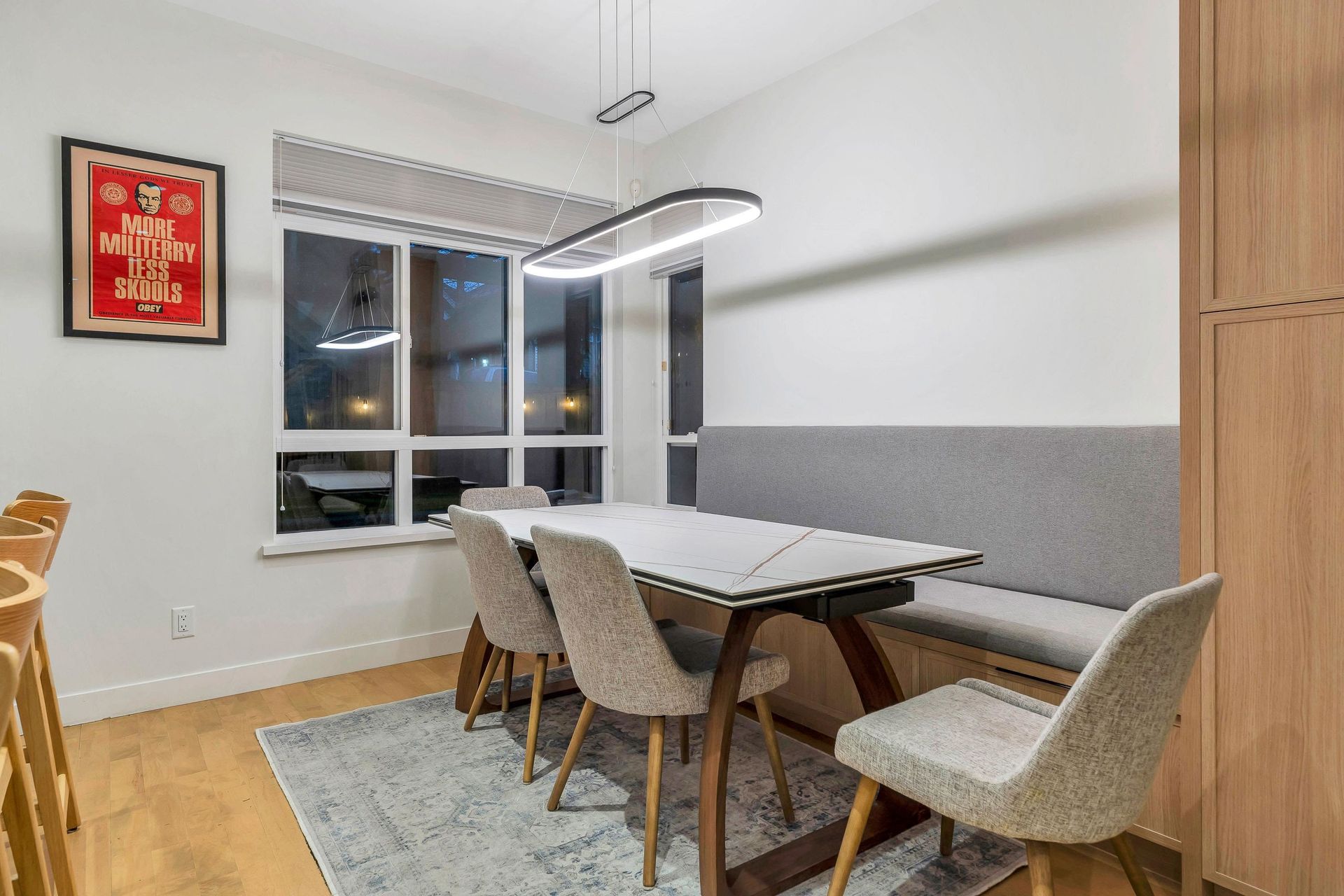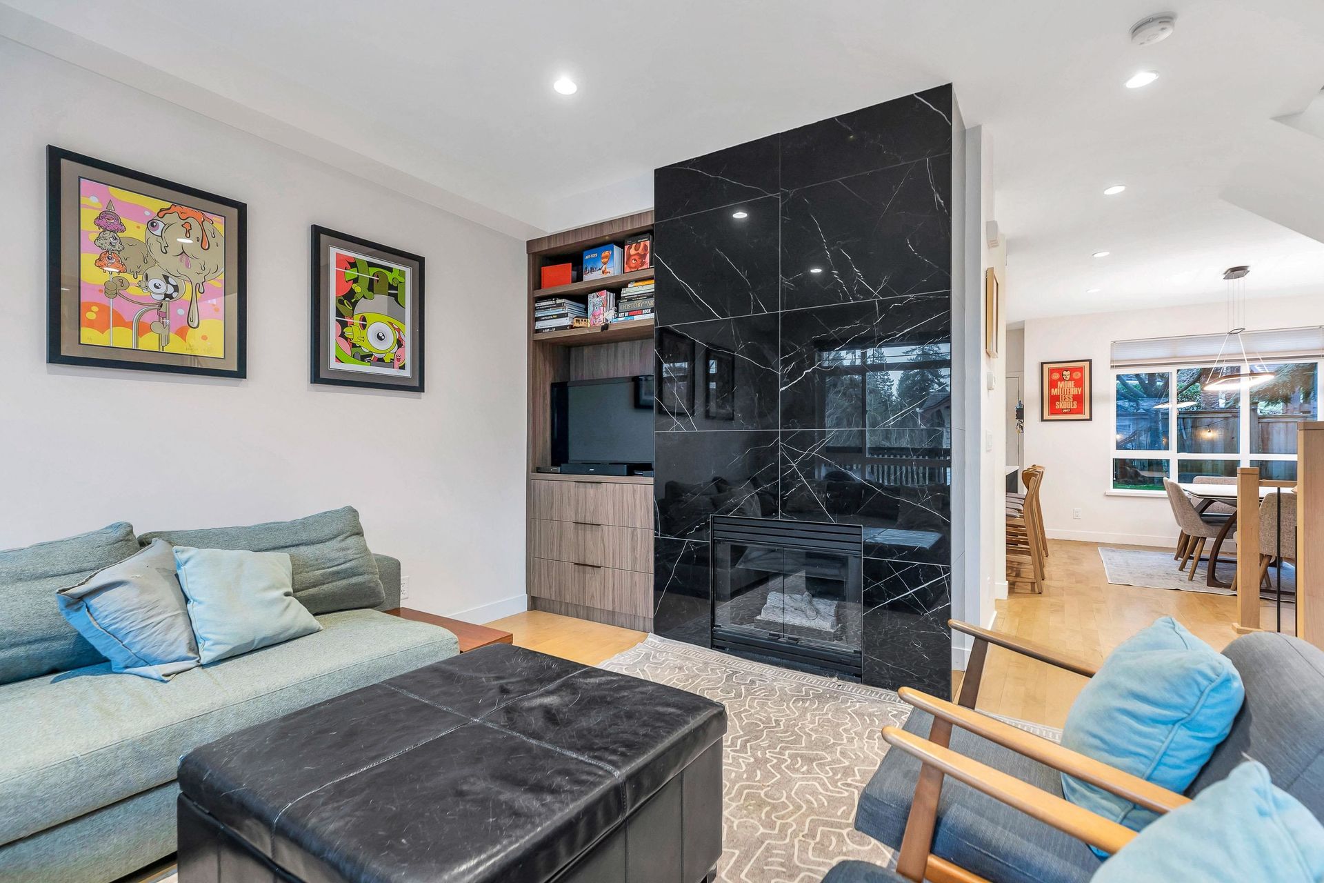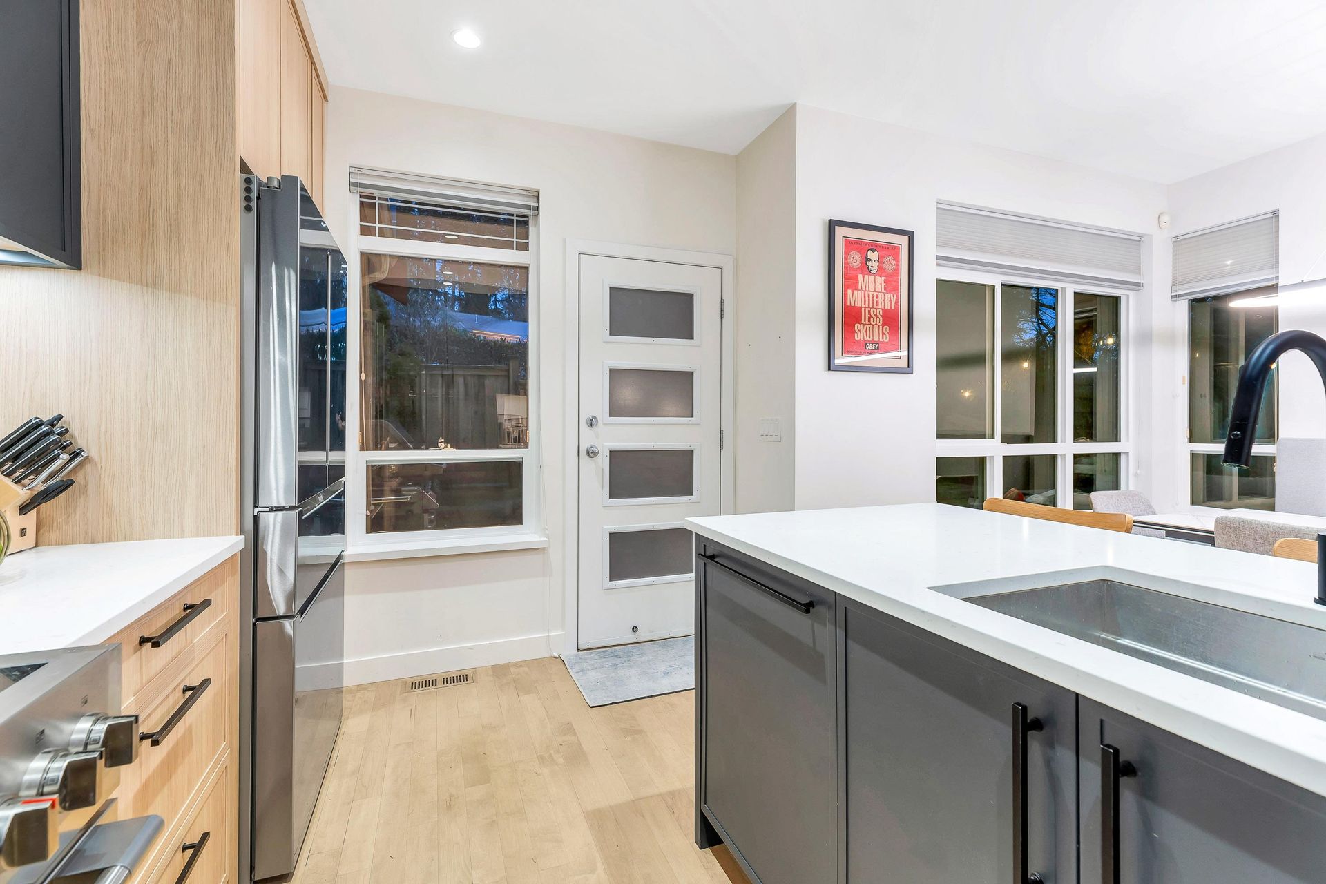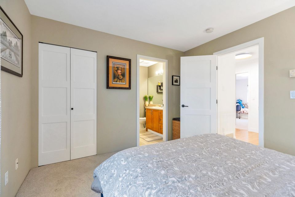 Extensively renovated Heritage Woods townhome with a professionally opened main floor creating a bright, modern layout. The redesigned kitchen offers contemporary finishes and walkout access to a private patio—perfect for indoor/outdoor living. Upstairs features 3 spacious bedrooms including a primary with ensuite. The lower-level flex room is ideal for office, gym, or media space and was roughed-in at construction for a future bathroom. Double parking. Steps to top-rated schools, parks, trails, Newport Village, Suter Brook and SkyTrain.