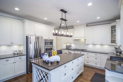Open, light and spacious the greatroom is highlighted with a gas fireplace and light coloured custom mantle. During the warm summer months open the large french doors and let this space double in size with access to the covered patio deck. This outside environment has recessed pot lights set in beautiful wooden soffits and a natural gas line for your BBQ or fire pit ensuring there is just as much ambiance outside as in. As friends and family gather there is always a contigent that enhabits the kitchen and in this home that kitchen is marvelous.