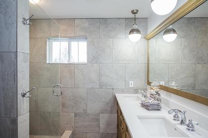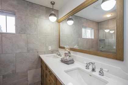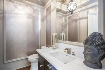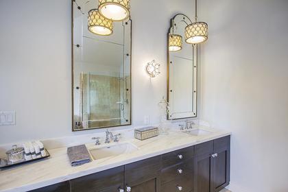 At the end of the evening there are three beautiful bedrooms upstairs with the guest, or kids, bedrooms each in their own motif of paint and matching fixtures. The guest bath has two sinks set atop custom cabinets and the floating shower door is something to see. The Master bedroom of this home is just that, a master. Vaulted ceilings greet you, double walk-in closets allow you place for everything and true to the pages of the best design book, the fixtures have been selected with the utmost care and attention. The master bath is also something to experience with its open frameless glass shower, custom mirrors and room to relax, pamper and repair as you slip into the deep soaker tub.