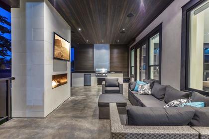 Tired of being inside? Open the doors to the resort-like backyard patio. This space with cedar walls and smooth stained concrete floors, high ceiling, full outdoor kitchen, large elegant fireplace and flatscreen with its own 5.1 surround sound system make outdoor life just as comfortable as indoor. Your home will be the hottest entertainment ticket in town for your friends and family.