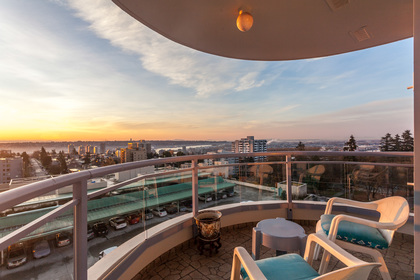 Welcome to the Berkley, a centrally located gem, well maintained with views for miles and a location that makes living convenient and enjoyable. With almost 1300sqft of living space, solarium and Southern exposure the lower mainland is at your feet every day. Enjoy tennis in the private courts with friends and family or take a walk to recreation, entertainment and shopping, all within easy distances. Storage and parking are included and this home is one of the best priced options in the area for quiet upper level concrete living. Call today or contact your agent to view this terrific property.