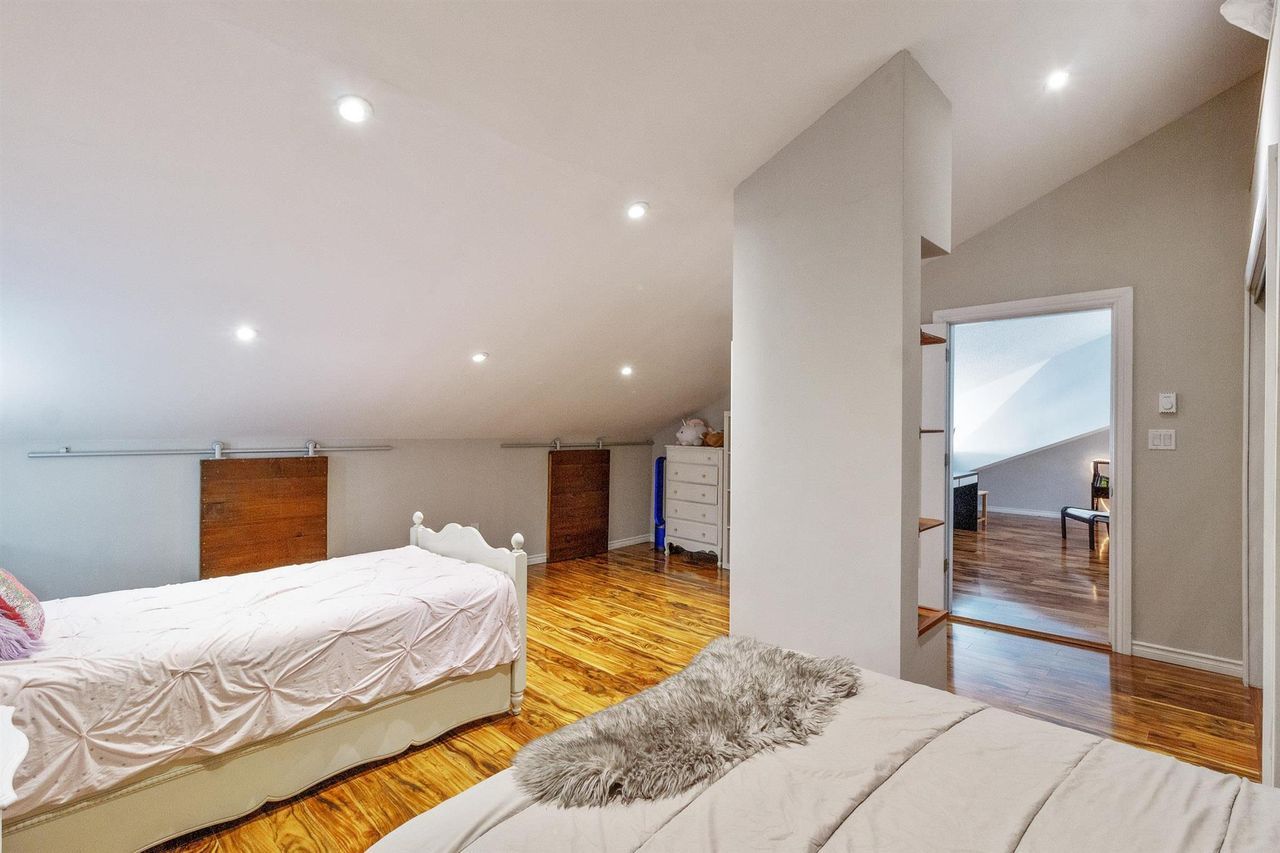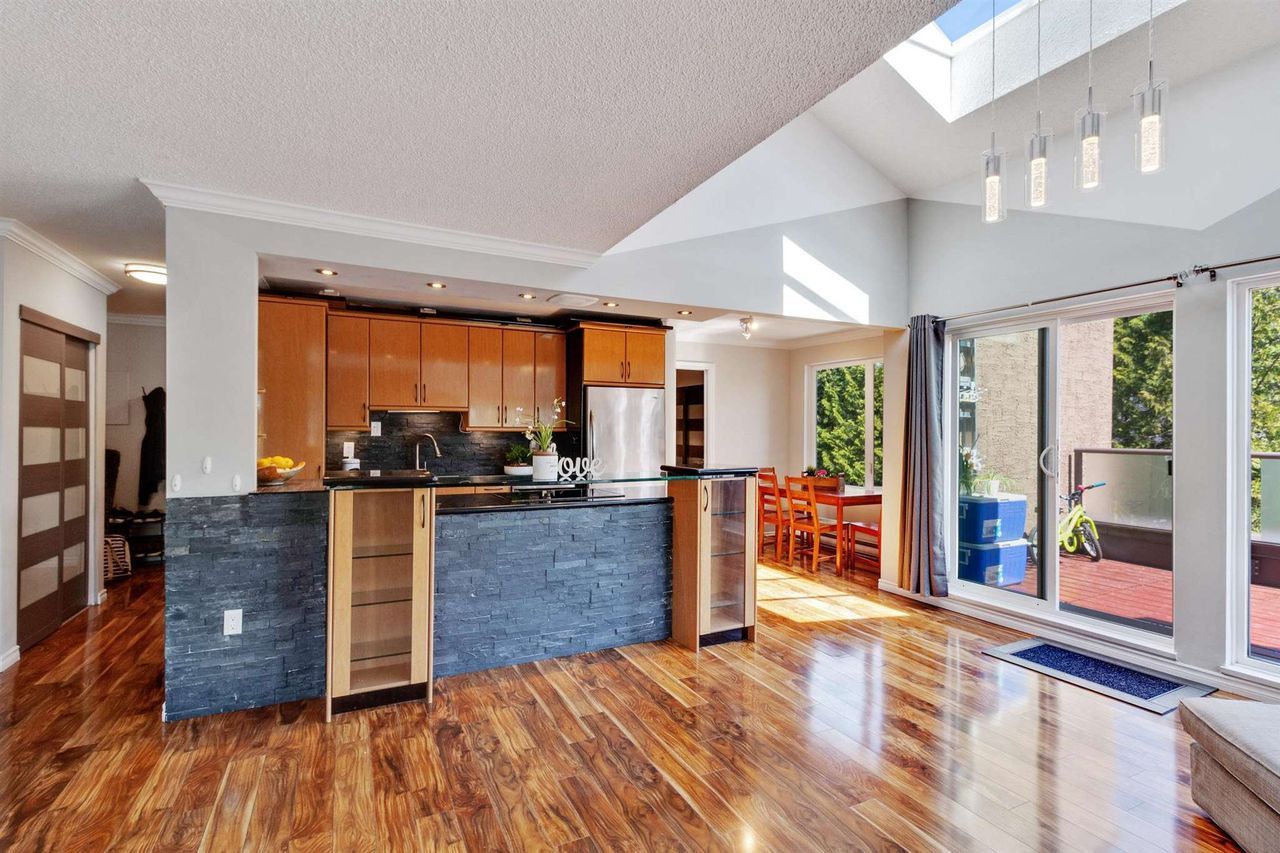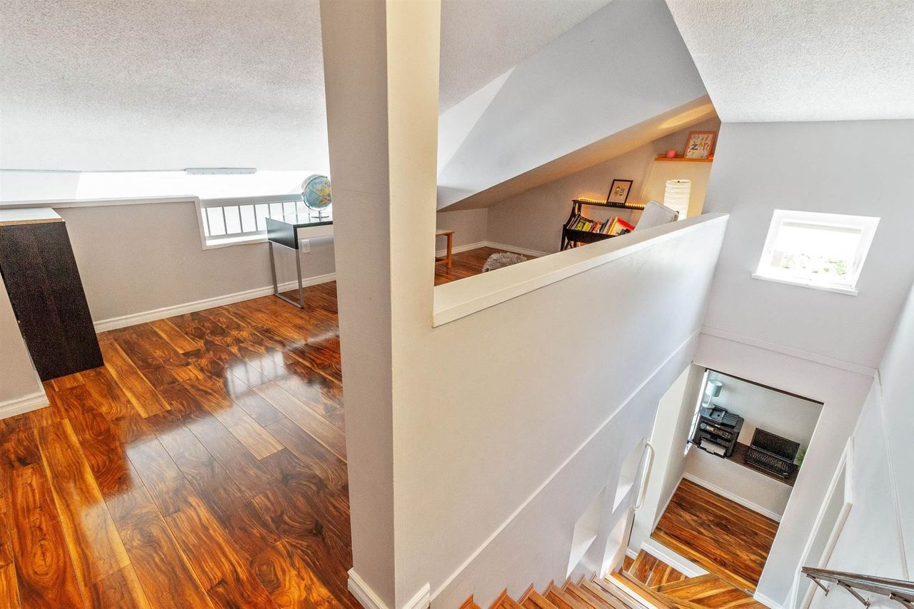 RARE FIND! Fully renovated, spacious, bright 2 level corner unit with 14ft vaulted ceilings and large open windows allowing plenty of natural light. You will want to see this home! Main floor boasts spacious living room and open chefs kitchen with quartz counters, stainless appliances, plenty of storage, and separate eating area. Main also features large master bedroom and updated master bathroom with rain shower head and glass doors. Upstairs offers versatility and space with large loft overlooking the living room below, along with a spacious great room perfect as a large bedroom, family room, or even art studio. Space to live! Fully rain-screened. Transit and shopping at your door. Fantastic building. A townhome feel for the price of a condo.