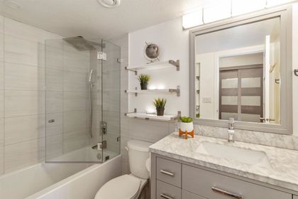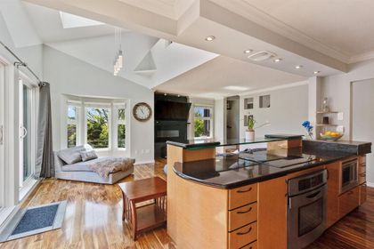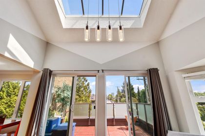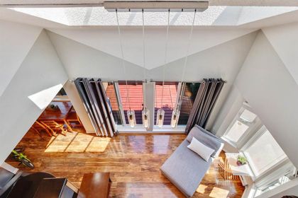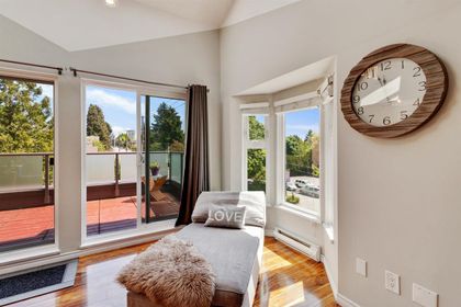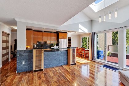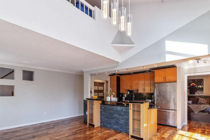 RARE FIND! Fully renovated, spacious, bright 2 level corner unit with 14ft vaulted ceilings and large open windows allowing plenty of natural light. You will want to see this home! Main floor boasts spacious living room and open chefs kitchen with quartz counters, stainless appliances, plenty of storage, and separate eating area. Main also features large master bedroom and updated master bathroom with rain shower head and glass doors. Upstairs offers versatility and space with large loft overlooking the living room below, along with a spacious great room perfect as a large bedroom, family room, or even art studio. Space to live! Fully rain-screened. Transit and shopping at your door. Fantastic building. A townhome feel for the price of a condo.