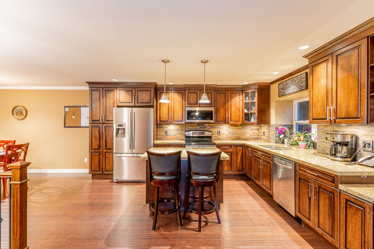 Renovated, meticulously maintained, private and quiet this home is move-in ready and awaits your lifestyle touches. The open floor plan showcases the high-quality custom kitchen as the heart of this home. Access your large deck off the dining room or cozy up around the gas fireplace, this living level is a dream. Downstairs there is an extra family room then pass through the door and enter the oversize recreation room/bedroom. The home was originally equipped with an additional kitchen on the lower level which could be returned to a nanny or in-law suite with separate entry. Lots of storage inside and out including an additional enclosed workshop, the size and features of this home are sure to please everyone in the family. Comes with access to recreation facilities and secured RV parking.