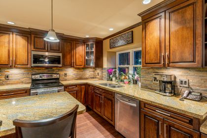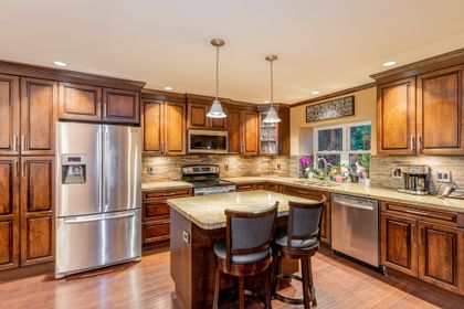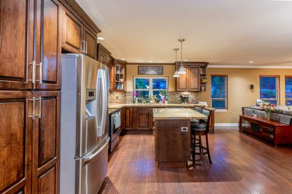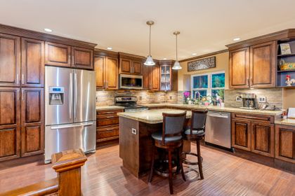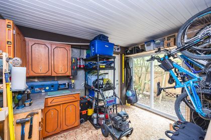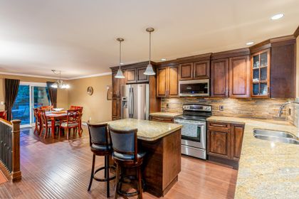 Renovated, meticulously maintained, private and quiet this home is move-in ready and awaits your lifestyle touches. The open floor plan showcases the high-quality custom kitchen as the heart of this home. Access your large deck off the dining room or cozy up around the gas fireplace, this living level is a dream. Downstairs there is an extra family room then pass through the door and enter the oversize recreation room/bedroom. The home was originally equipped with an additional kitchen on the lower level which could be returned to a nanny or in-law suite with separate entry. Lots of storage inside and out including an additional enclosed workshop, the size and features of this home are sure to please everyone in the family. Comes with access to recreation facilities and secured RV parking.
