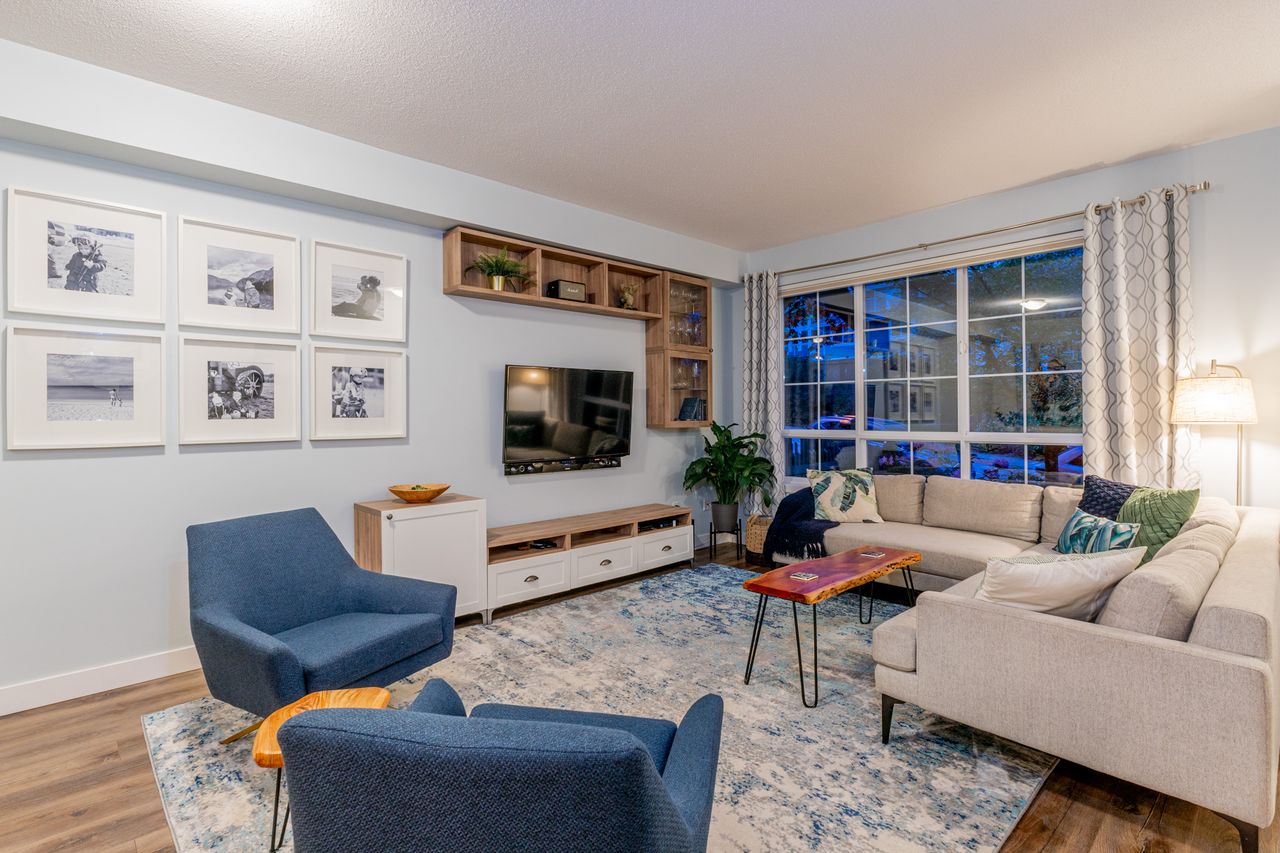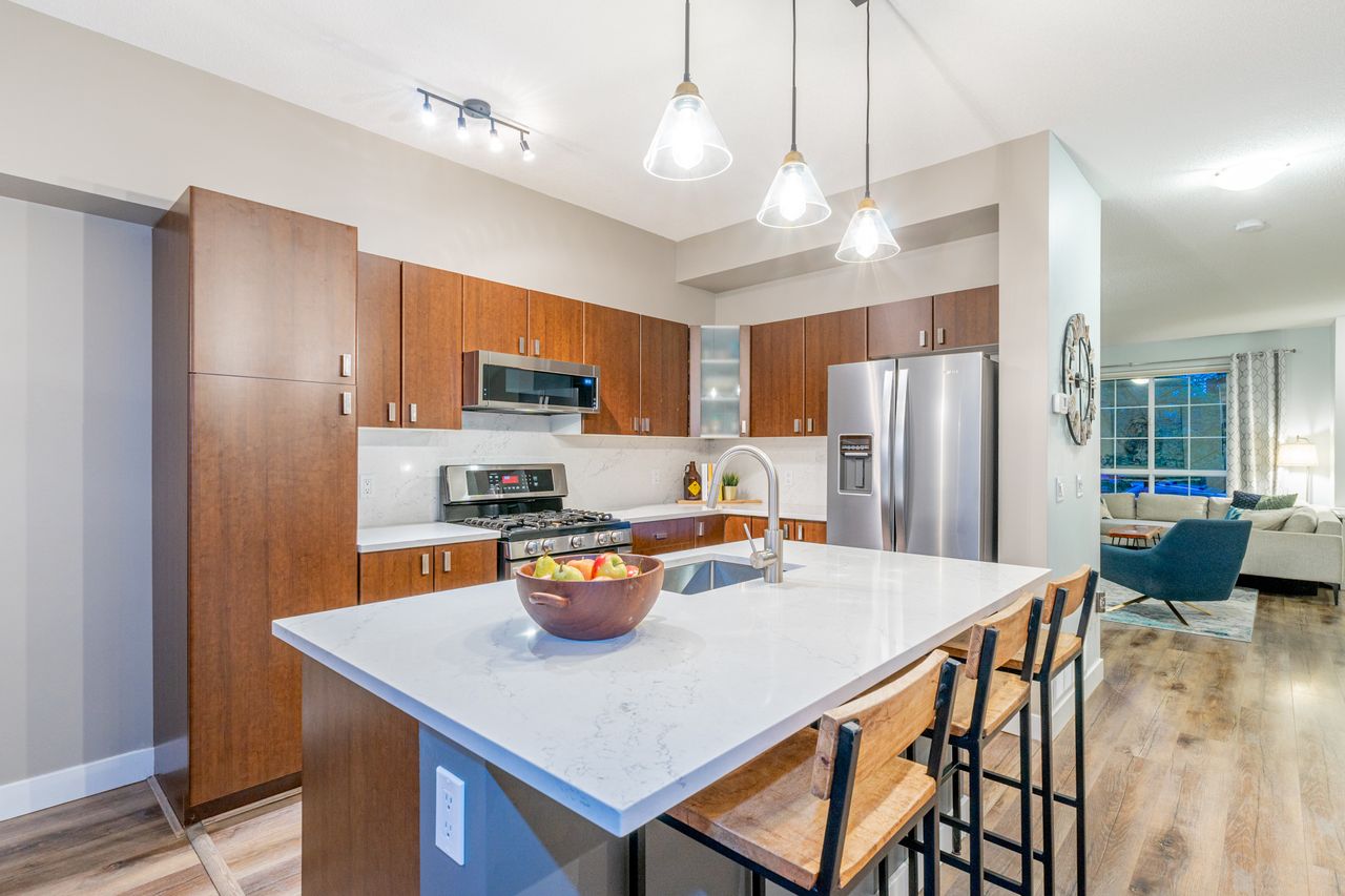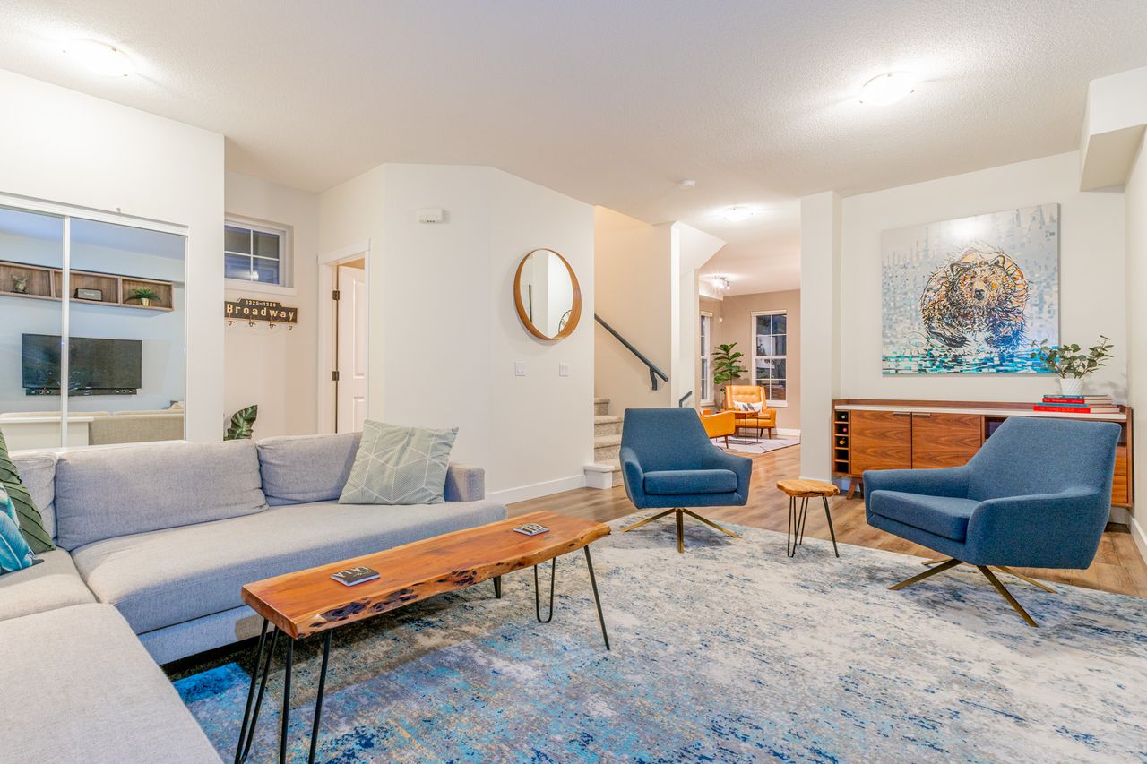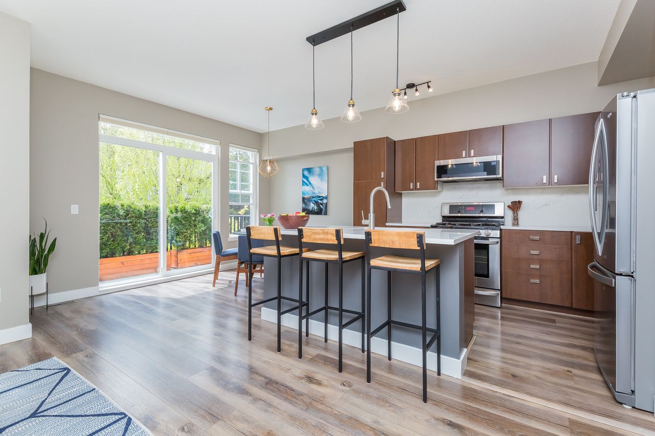 If the details matter to you then this is the home to look at. Names like Hunter Douglas & California Closet design set this home apart from the competition. This wide, bright open end unit home has a full double garage and a huge fourth bedroom on the lower level that has a bathroom roughed in by the builders. The main floor opens to street level and the kitchen is prime for living, eating and entertaining with the sleek white quartz counters and a large island. Upstairs an oversized master suite covers one wing while the other has two generous kids' rooms. One of the most desirable developments in the area with all levels of schools, parks, trails, shopping and entertainment close at hand. Come see what your best life could be like in this beautifully appointed Quest townhome in Heritage Woods.
