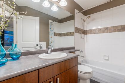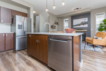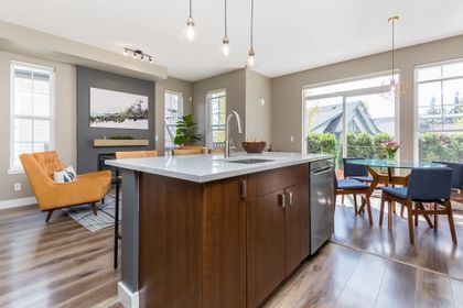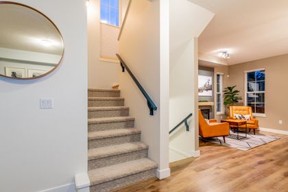 If the details matter to you then this is the home to look at. Names like Hunter Douglas & California Closet design set this home apart from the competition. This wide, bright open end unit home has a full double garage and a huge fourth bedroom on the lower level that has a bathroom roughed in by the builders. The main floor opens to street level and the kitchen is prime for living, eating and entertaining with the sleek white quartz counters and a large island. Upstairs an oversized master suite covers one wing while the other has two generous kids' rooms. One of the most desirable developments in the area with all levels of schools, parks, trails, shopping and entertainment close at hand. Come see what your best life could be like in this beautifully appointed Quest townhome in Heritage Woods.