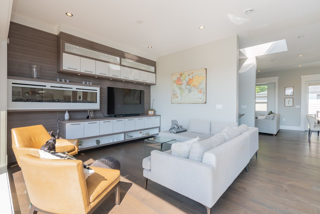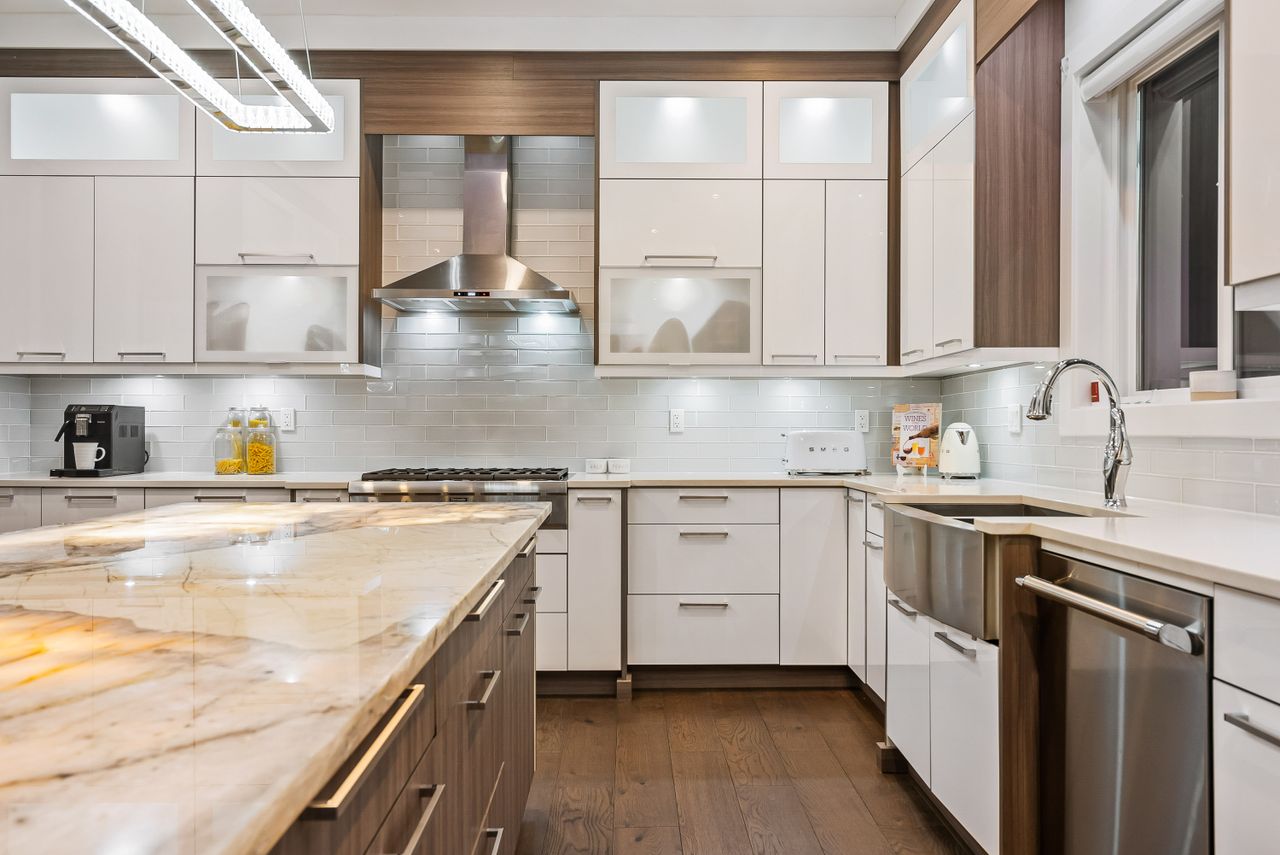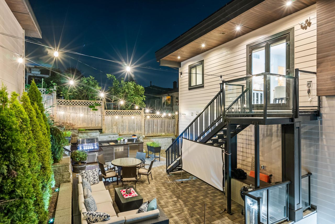 Come and see this very special luxury property in the Heights. This home feels grand from the moment you enter with pure white walls, high ceilings and impeccable use of trim and fine materials. With a beautiful western exposure, the views highlight mountains, the city and water while beautiful sunlight pours into the home year-round. The main living spaces are open and inviting combining streamlined designer touches with the use of natural woods and stone all highlighted by the under-lit Onyx kitchen island. With a total of six bedrooms, a den, a spice kitchen, a theatre, an outdoor kitchen and a separate private two-bedroom legal suite, this home will have you wishing for nothing. Located on a new quiet cul-de-sac street the central location with lane access backing green space tops it all off. Come and see one of the best in Burnaby.