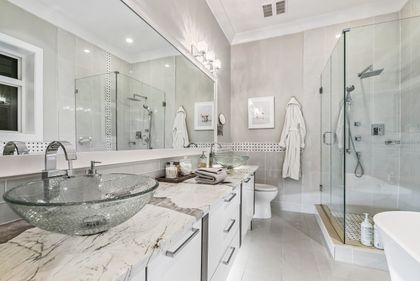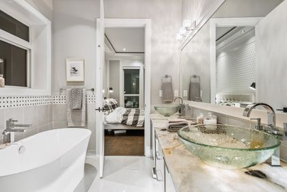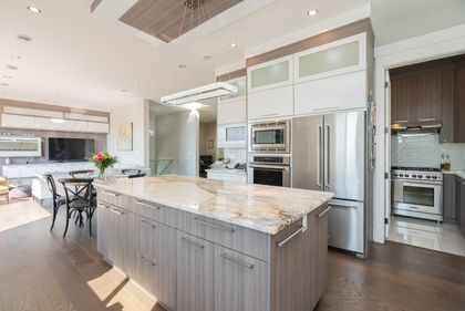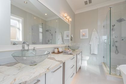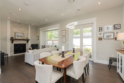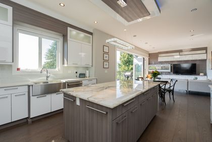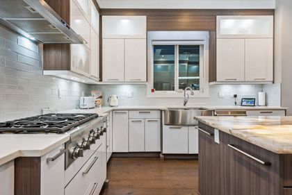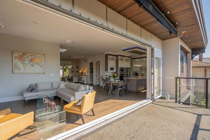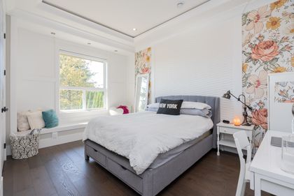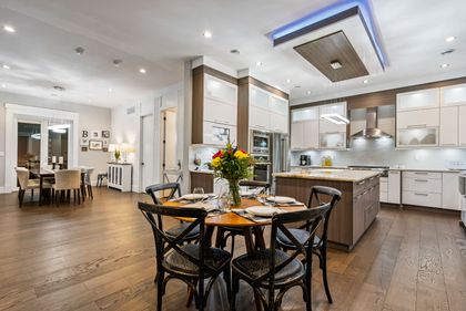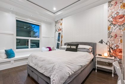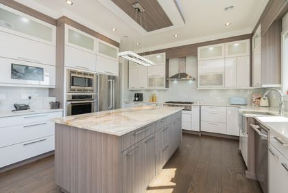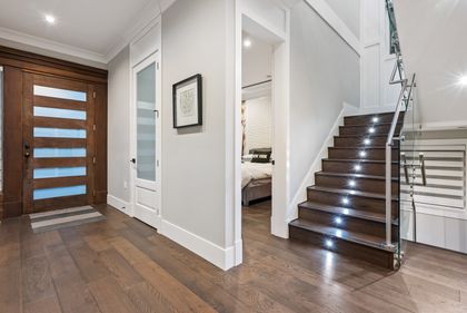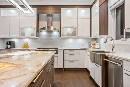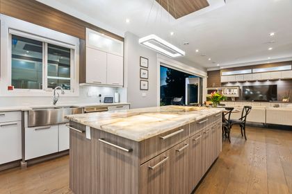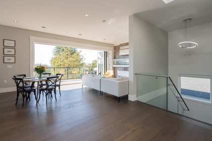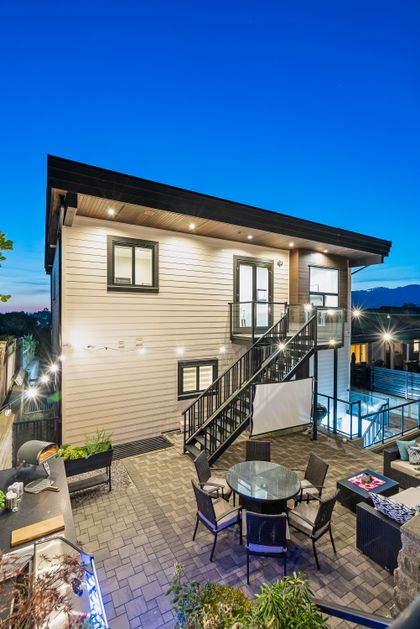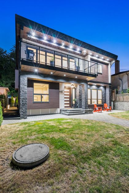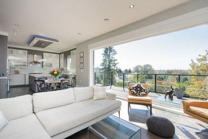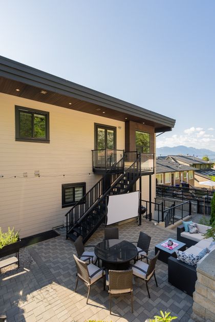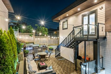 Come and see this very special luxury property in the Heights. This home feels grand from the moment you enter with pure white walls, high ceilings and impeccable use of trim and fine materials. With a beautiful western exposure, the views highlight mountains, the city and water while beautiful sunlight pours into the home year-round. The main living spaces are open and inviting combining streamlined designer touches with the use of natural woods and stone all highlighted by the under-lit Onyx kitchen island. With a total of six bedrooms, a den, a spice kitchen, a theatre, an outdoor kitchen and a separate private two-bedroom legal suite, this home will have you wishing for nothing. Located on a new quiet cul-de-sac street the central location with lane access backing green space tops it all off. Come and see one of the best in Burnaby.