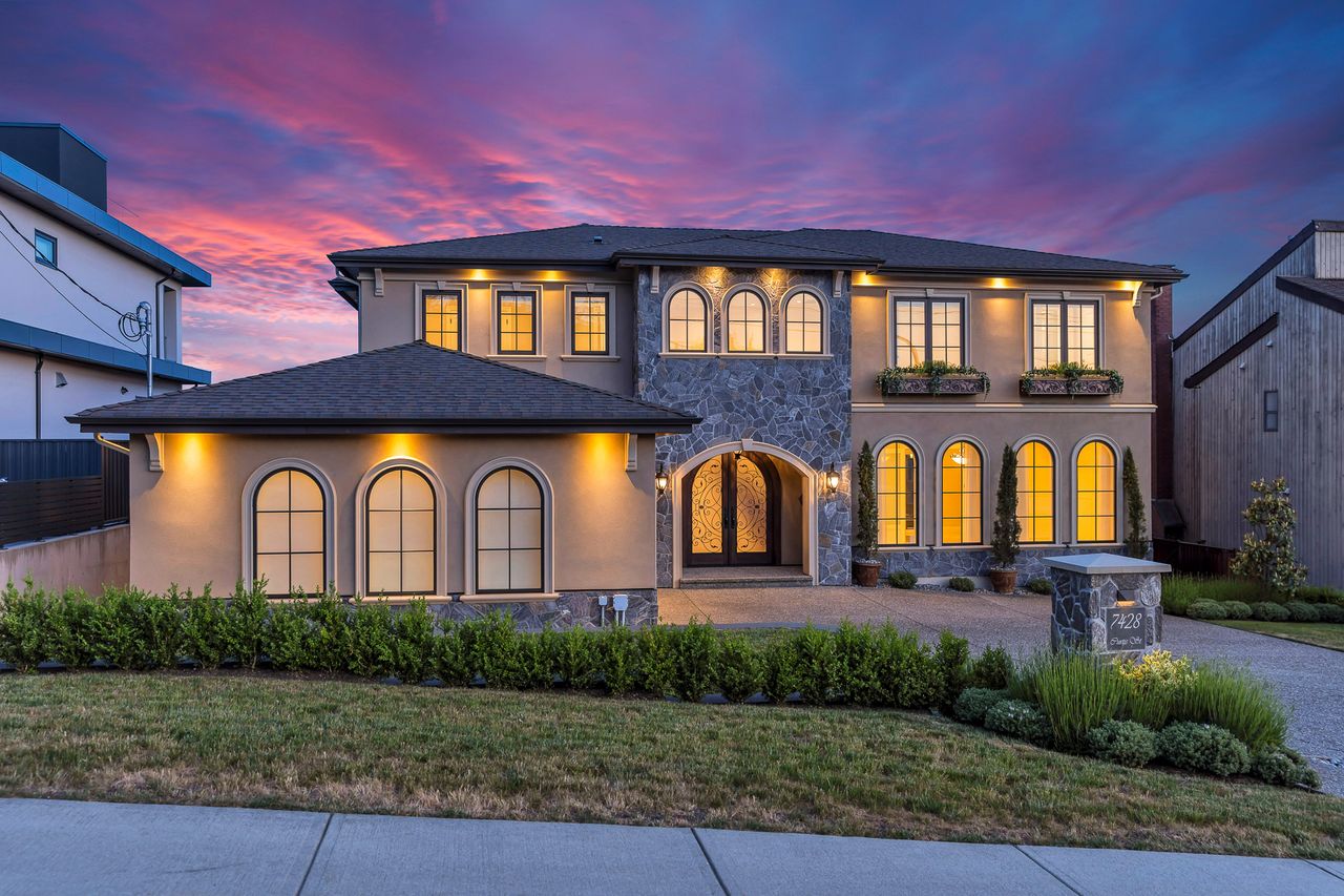 Welcome to 'La Casa Dei Tramonti', the House of Sunsets, situated at the coveted address of 7428 Curtis. This abode of grandeur and luxury was meticulously crafted with a blend of precision, elegance, and artistic passion. Sitting majestically on its south-facing plot, it is bathed in breathtaking evening sunlight, while offering panoramic views from the San Juan Islands to the Grouse Mountain's snow-clad slopes. Every detail inside this exclusive residence, from the superior-quality materials to the top-tier appliances, is thoughtfully curated to elevate your lifestyle and deliver an unparalleled living experience. A beautifully crafted Venetian Plaster wall serves as a distinctive artistic centerpiece, adding a layer of sophistication to the home's exquisite interiors. Furthermore, this home is designed with a future-forward approach, offering innovative structural spaces primed for potential expansion. Your aspiration for an unmatched standard of living, filled with refinement and grandeur, begins here at La Casa Dei Tramonti.