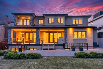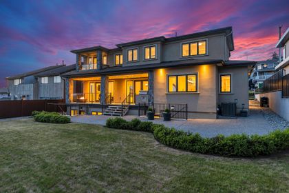 Welcome to 'La Casa Dei Tramonti', the House of Sunsets, situated at the coveted address of 7428 Curtis. This abode of grandeur and luxury was meticulously crafted with a blend of precision, elegance, and artistic passion. Sitting majestically on its south-facing plot, it is bathed in breathtaking evening sunlight, while offering panoramic views from the San Juan Islands to the Grouse Mountain's snow-clad slopes. Every detail inside this exclusive residence, from the superior-quality materials to the top-tier appliances, is thoughtfully curated to elevate your lifestyle and deliver an unparalleled living experience. A beautifully crafted Venetian Plaster wall serves as a distinctive artistic centerpiece, adding a layer of sophistication to the home's exquisite interiors. Furthermore, this home is designed with a future-forward approach, offering innovative structural spaces primed for potential expansion. Your aspiration for an unmatched standard of living, filled with refinement and grandeur, begins here at La Casa Dei Tramonti.