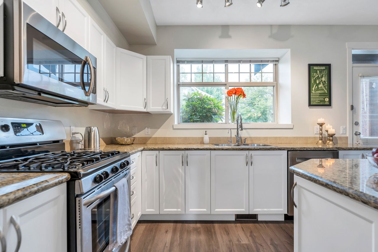 Experience the harmony of nature and modern living at this 3-level townhome in the heart of Heritage Woods, Port Moody. Nestled amidst parks and trails, and in close proximity to excellent schools and shopping, convenience is your new way of life. The home offers a master suite with breathtaking views that stretch to the distant ocean and 2 additional bedrooms up. On the main a contemporary kitchen seamlessly transitions into the dining and living areas, leading to a deck with sweeping panoramas of the valley as far as you can see. The extensive tandem garage ensures ample parking and storage space. Your private, fenced backyard is steps away from street parking with a level entry kitchen door. This sought-after, well-managed development is waiting to welcome you home.