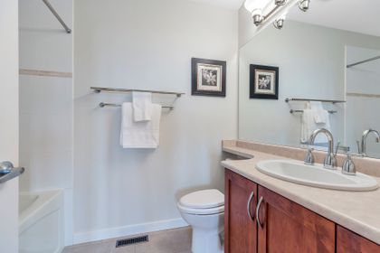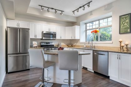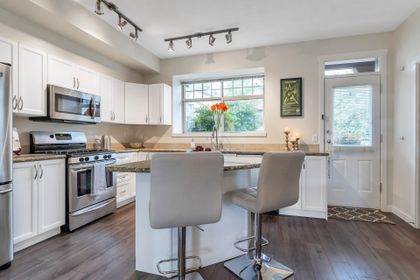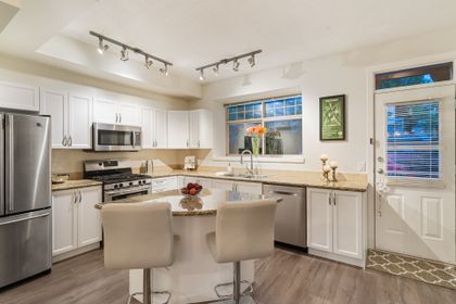 Experience the harmony of nature and modern living at this 3-level townhome in the heart of Heritage Woods, Port Moody. Nestled amidst parks and trails, and in close proximity to excellent schools and shopping, convenience is your new way of life. The home offers a master suite with breathtaking views that stretch to the distant ocean and 2 additional bedrooms up. On the main a contemporary kitchen seamlessly transitions into the dining and living areas, leading to a deck with sweeping panoramas of the valley as far as you can see. The extensive tandem garage ensures ample parking and storage space. Your private, fenced backyard is steps away from street parking with a level entry kitchen door. This sought-after, well-managed development is waiting to welcome you home.